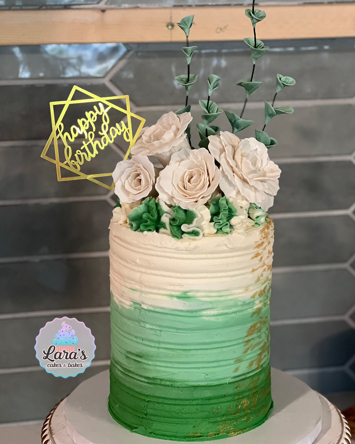 Tall 6″ Cake with Edible Roses and Eucalyptus